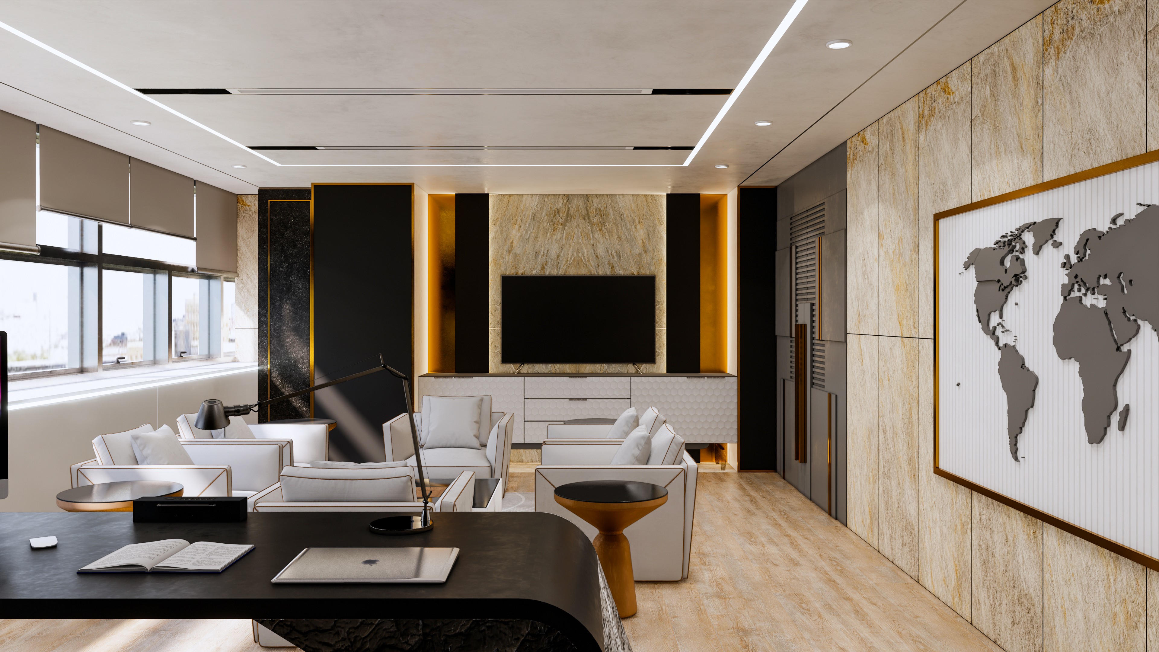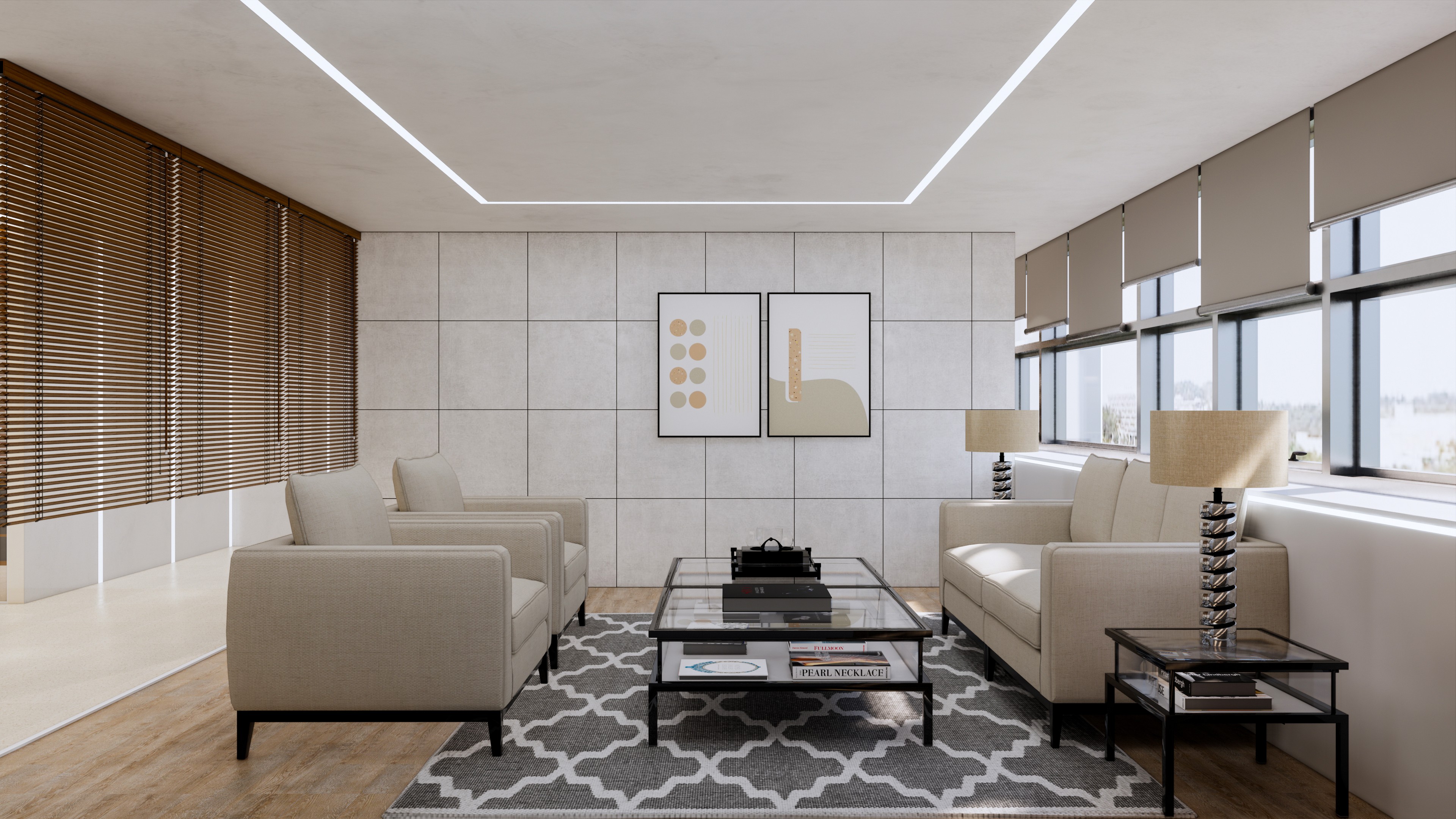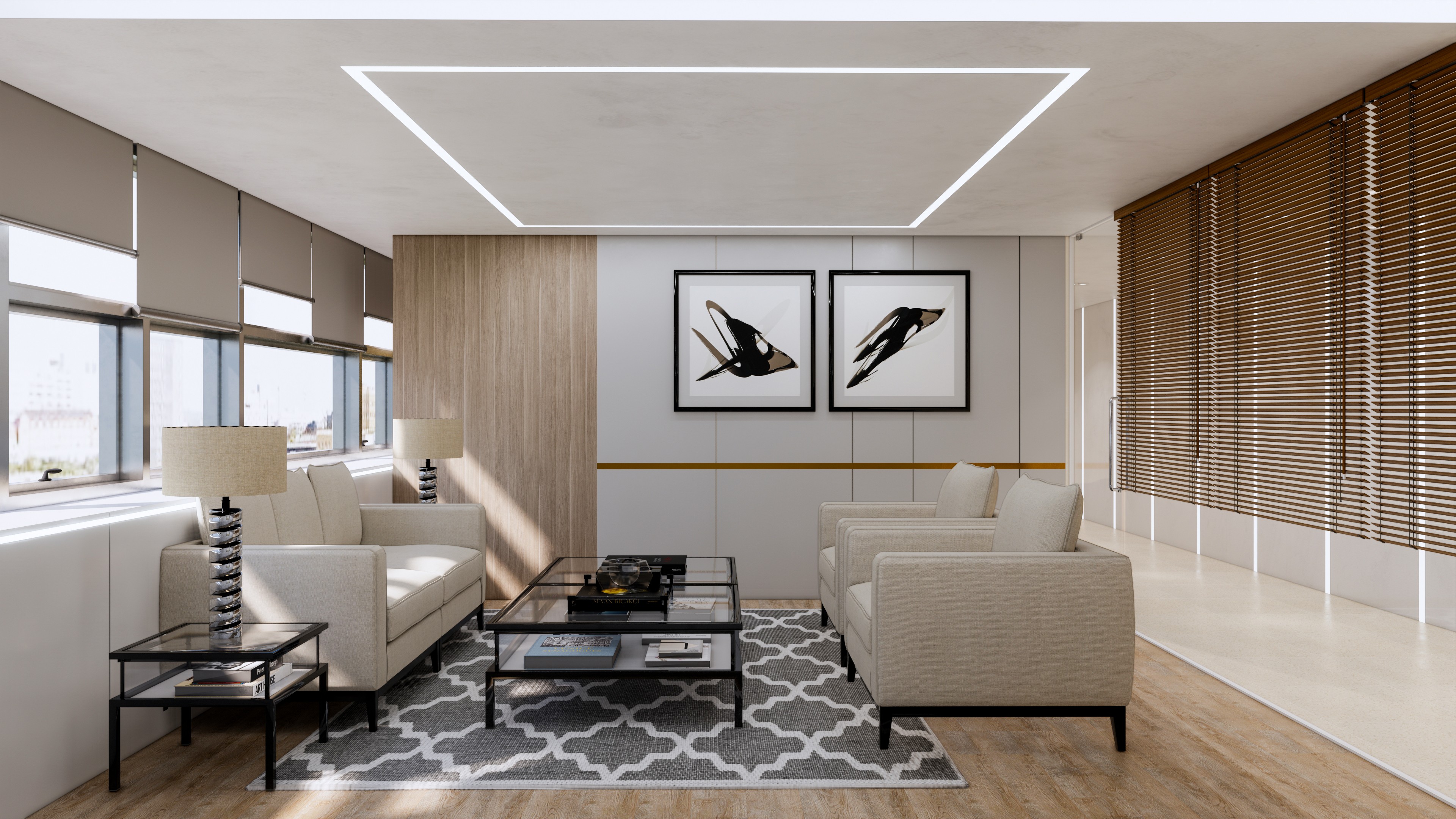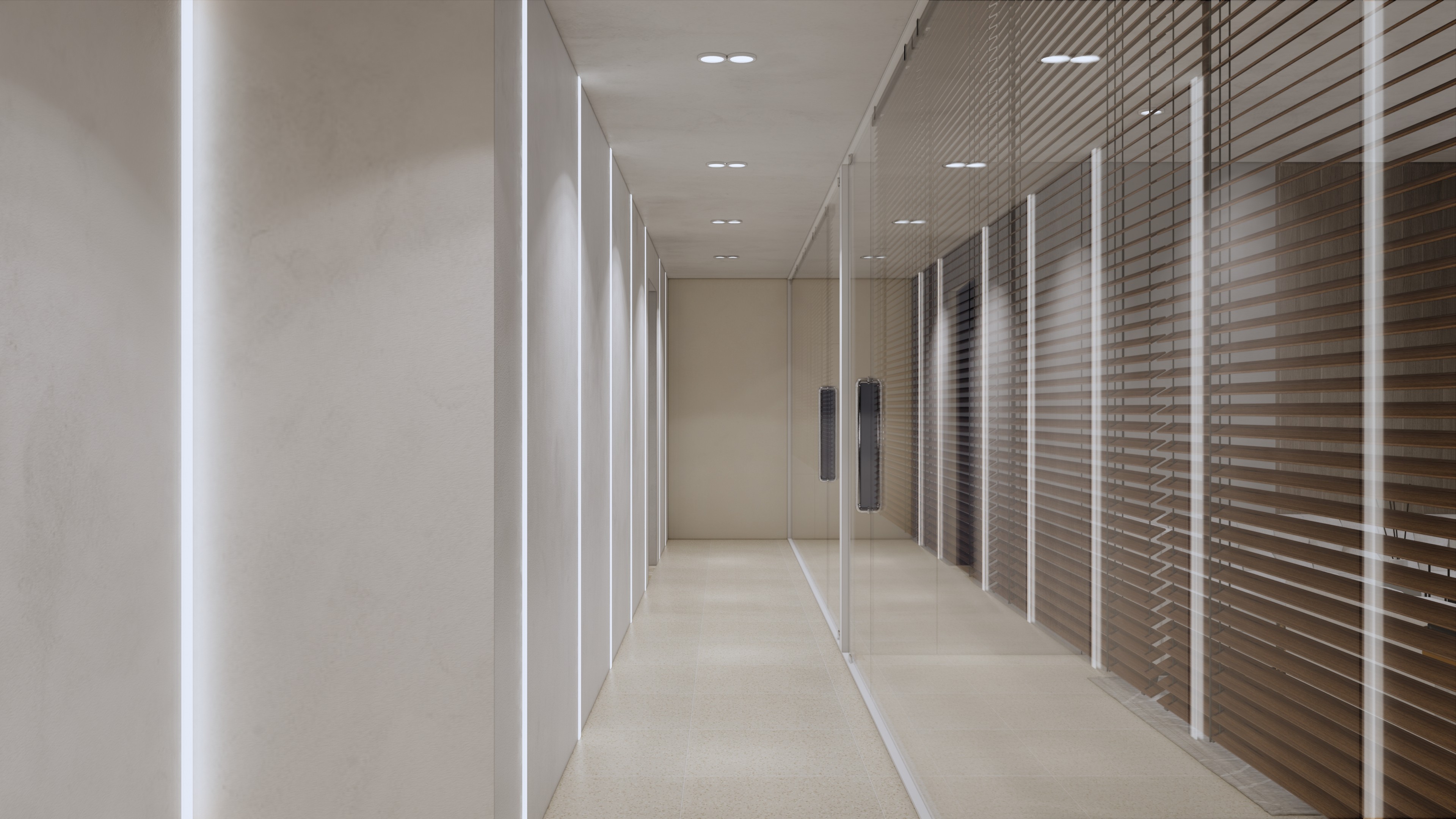 이 사옥 디자인은 전문성과 현대성을 결합한 실용적인 공간을 목표로 하고 있습니다. 베이지 톤의 차분한 색상은 직원들이 일에 집중하고 협업할 수 있는 편안한 분위기를 조성합니다. 이러한 중립적인 팔레트는 사무실에 평온함을 더하며, 공간을 명료하게 만들어 주는 역할을 합니다.