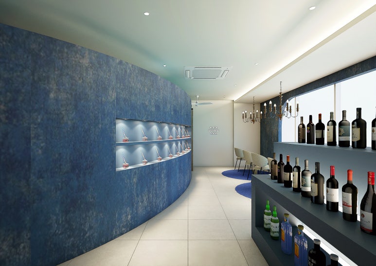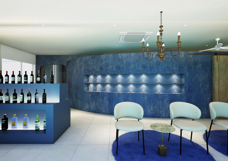 리셉션 공간 한켠에 배치된 미니 와인바 & F&B 진열존은