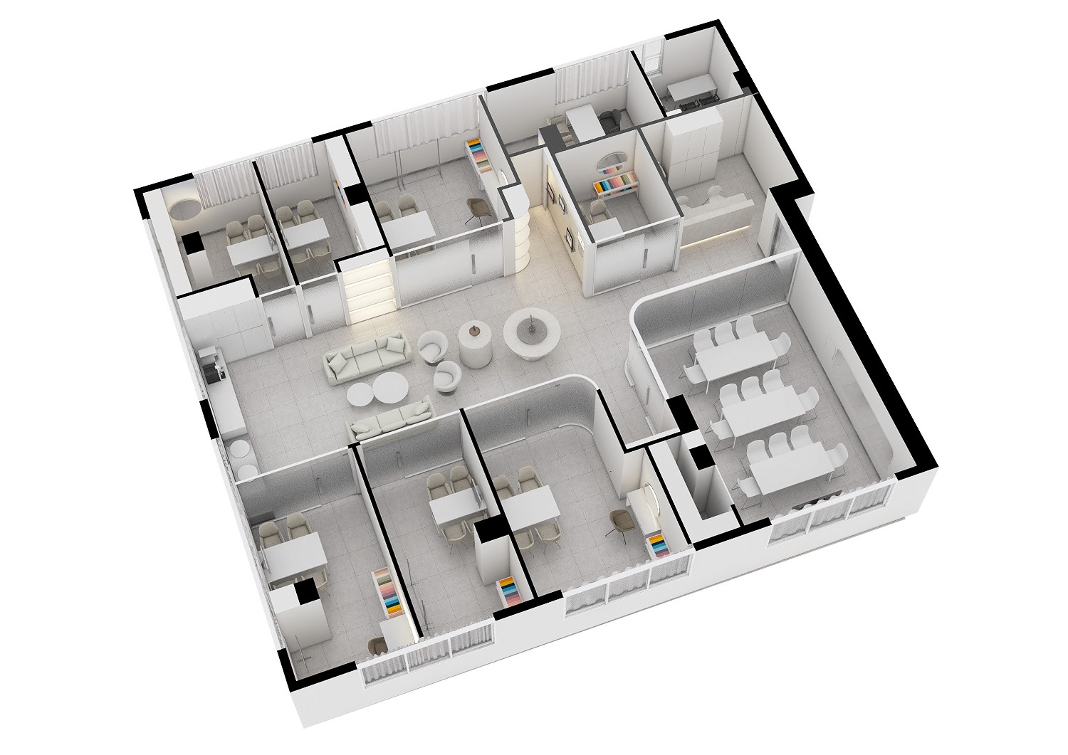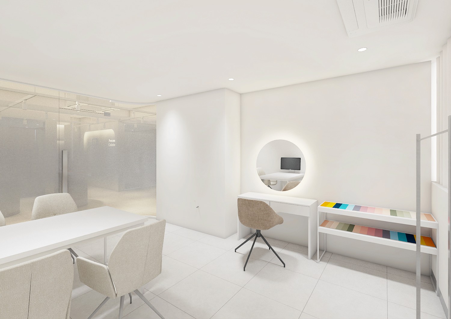 또한, 공간의 다양한 구역은 컬러시그널의 서비스와 고객의 경험이 자연스럽게 이어지도록 구성되었습니다. 고객 대기 공간에서부터 서비스 공간에 이르기까지의 동선은 유연하고 자연스럽게 설계되었으며, 고객이 이 흐름 속에서 브랜드와의 교감을 느낄 수 있도록 하였습니다.