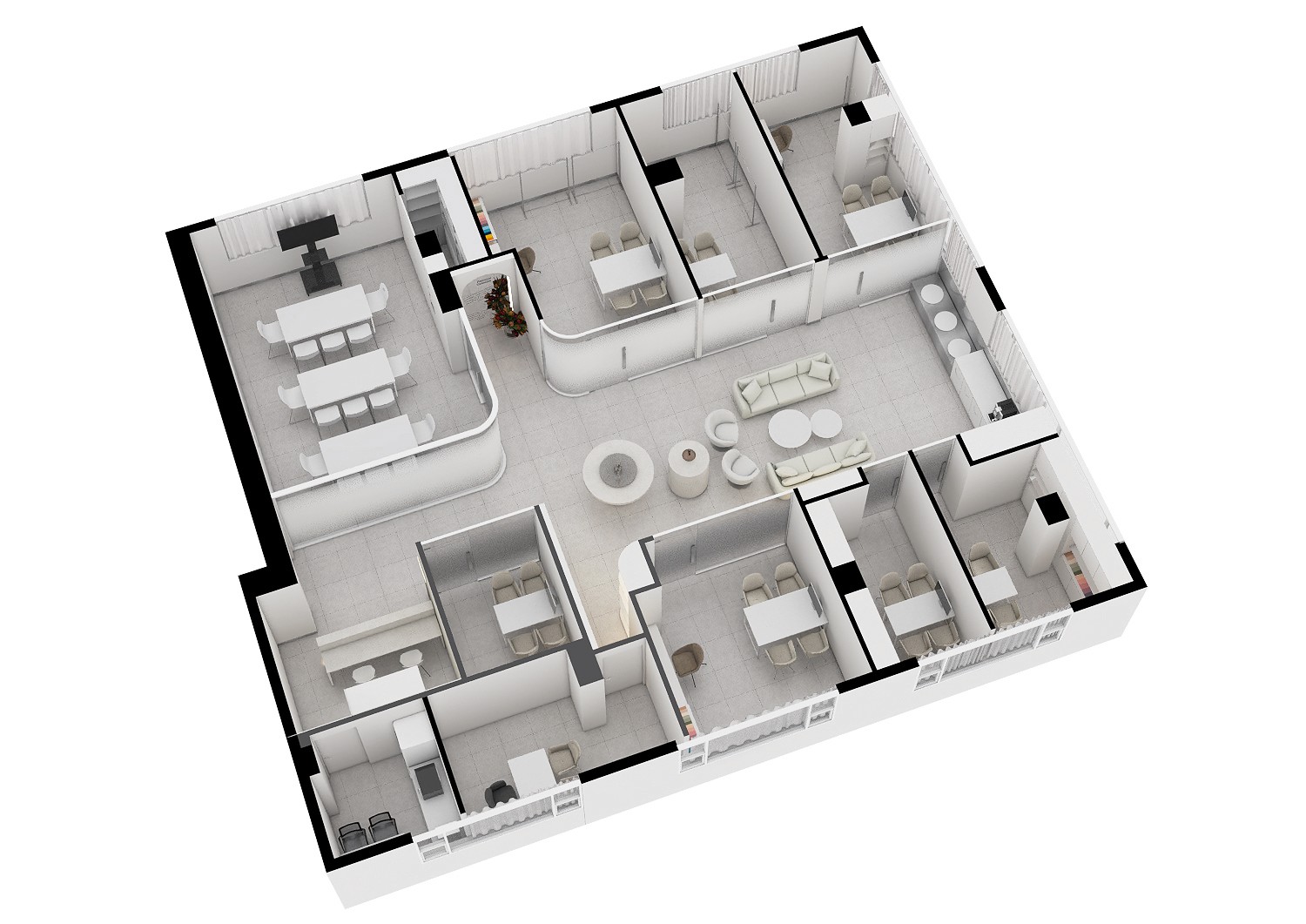 리안디자인그룹의 철학은 실용적이면서도 창의적인 솔루션을 통해 고객의 요구를 충족시키는 데 있습니다. 이 프로젝트에서도 그러한 철학이 잘 반영되었습니다. 공간을 단순히 예쁘게 꾸미는 것이 아니라, 고객이 브랜드의 메시지와 철학을 온전히 느낄 수 있도록 배려했습니다. 예를 들어, 모서리가 없는 부드러운 곡선의 유리벽과 공간 구획은 고객이 공간에서 머무르는 동안 편안함과 안정감을 느낄 수 있도록 의도된 요소입니다.