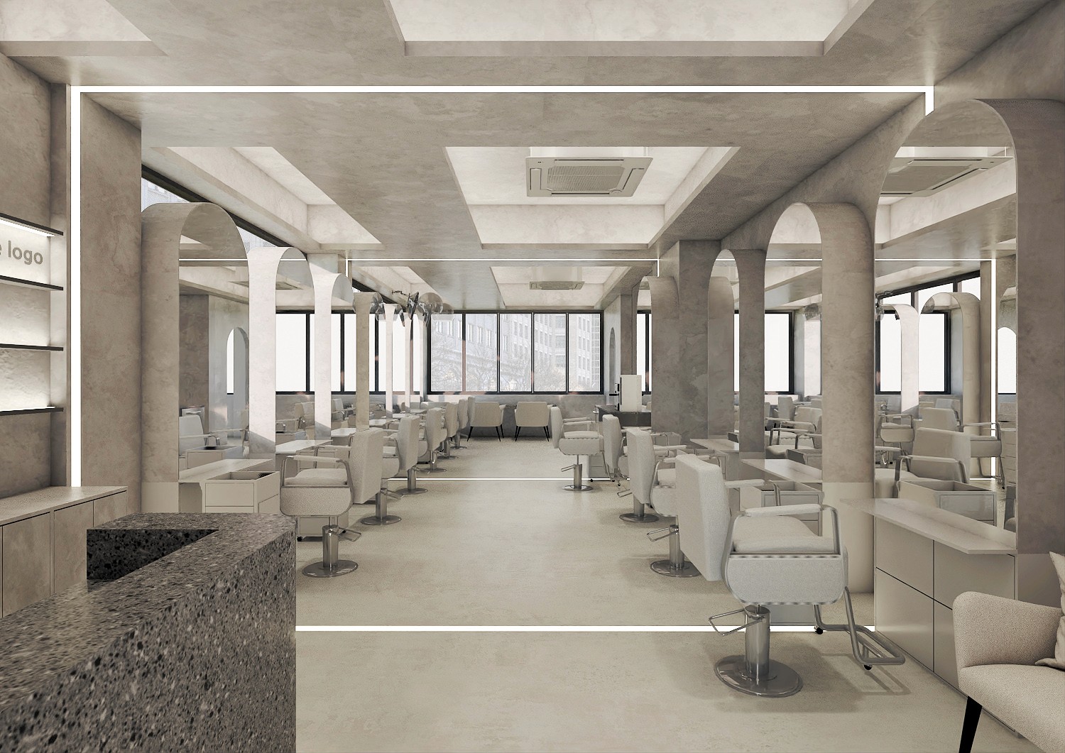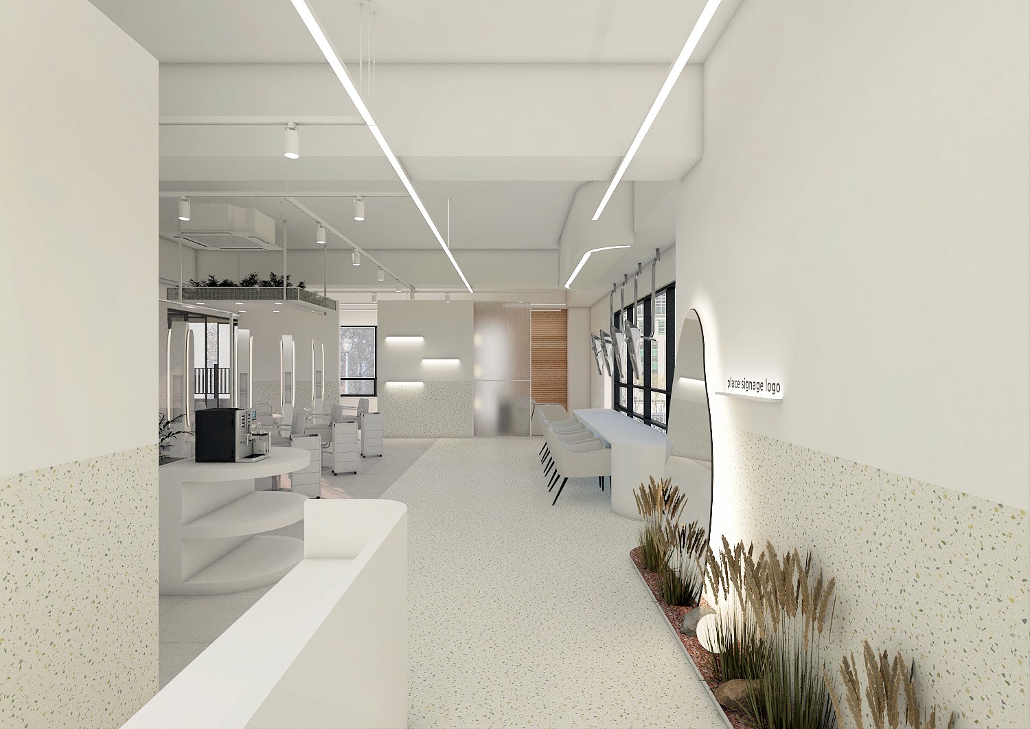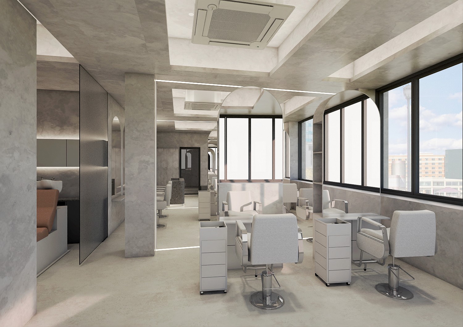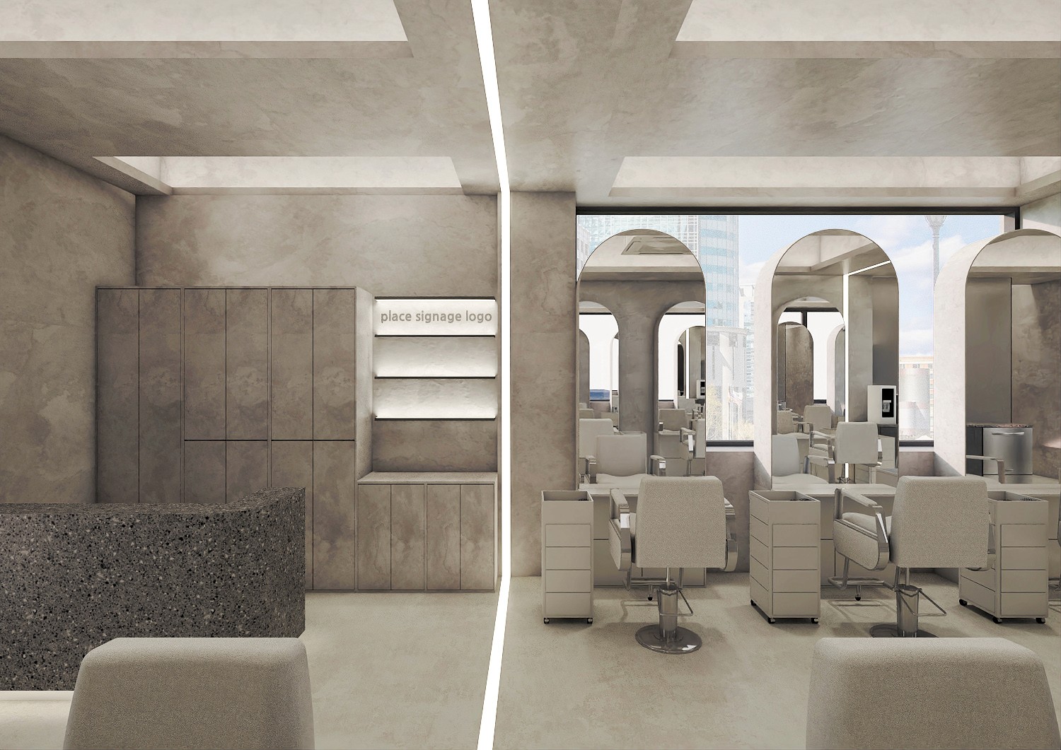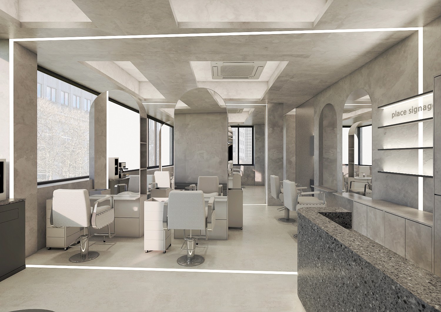 단순히 트리트먼트만을 받는 장소가 아닌것에 집중하여,커피 한잔을 마시며 휴식을 취할수 있는 편안하고 평화로운 환경을 만들기 위해 어느 컬러와 전시되어도 시각적 편안함을 주는 밝은 톤의 그레이 계열(유로미장)을 선택하였습니다.조명 또한 시술을 받는 곳에만 집중하였고,그 외 공간은 간접적인 조명으로 비추었습니다.