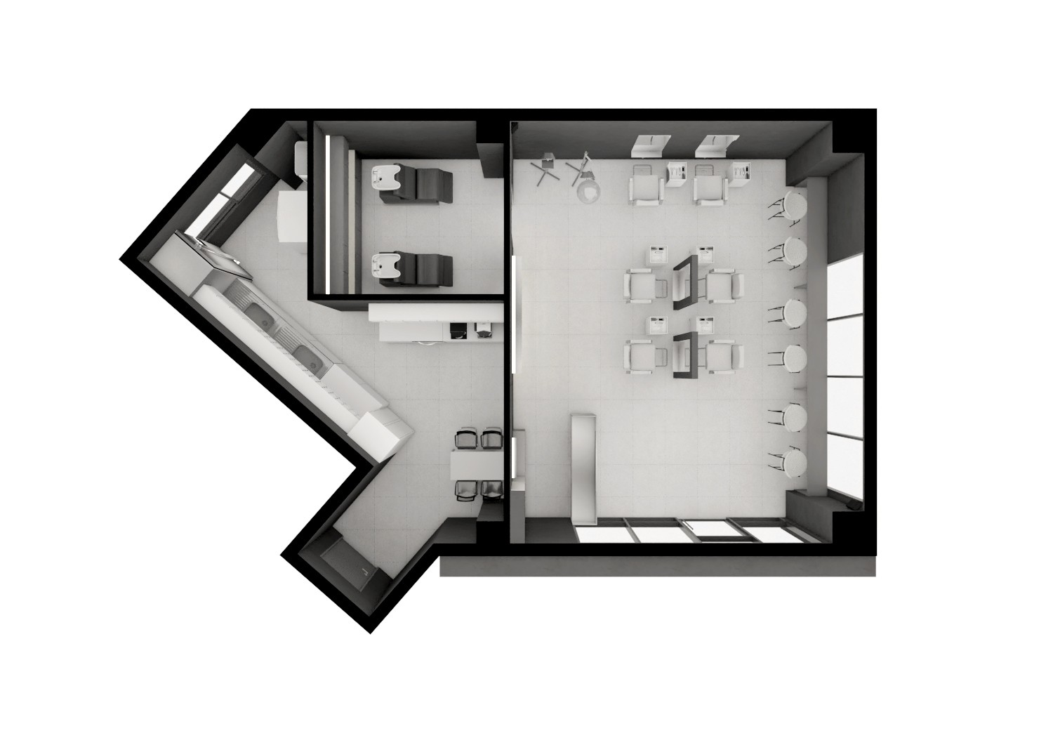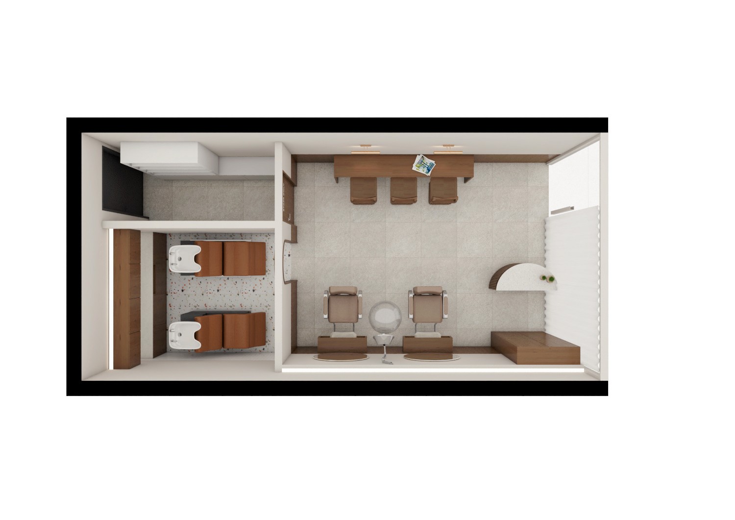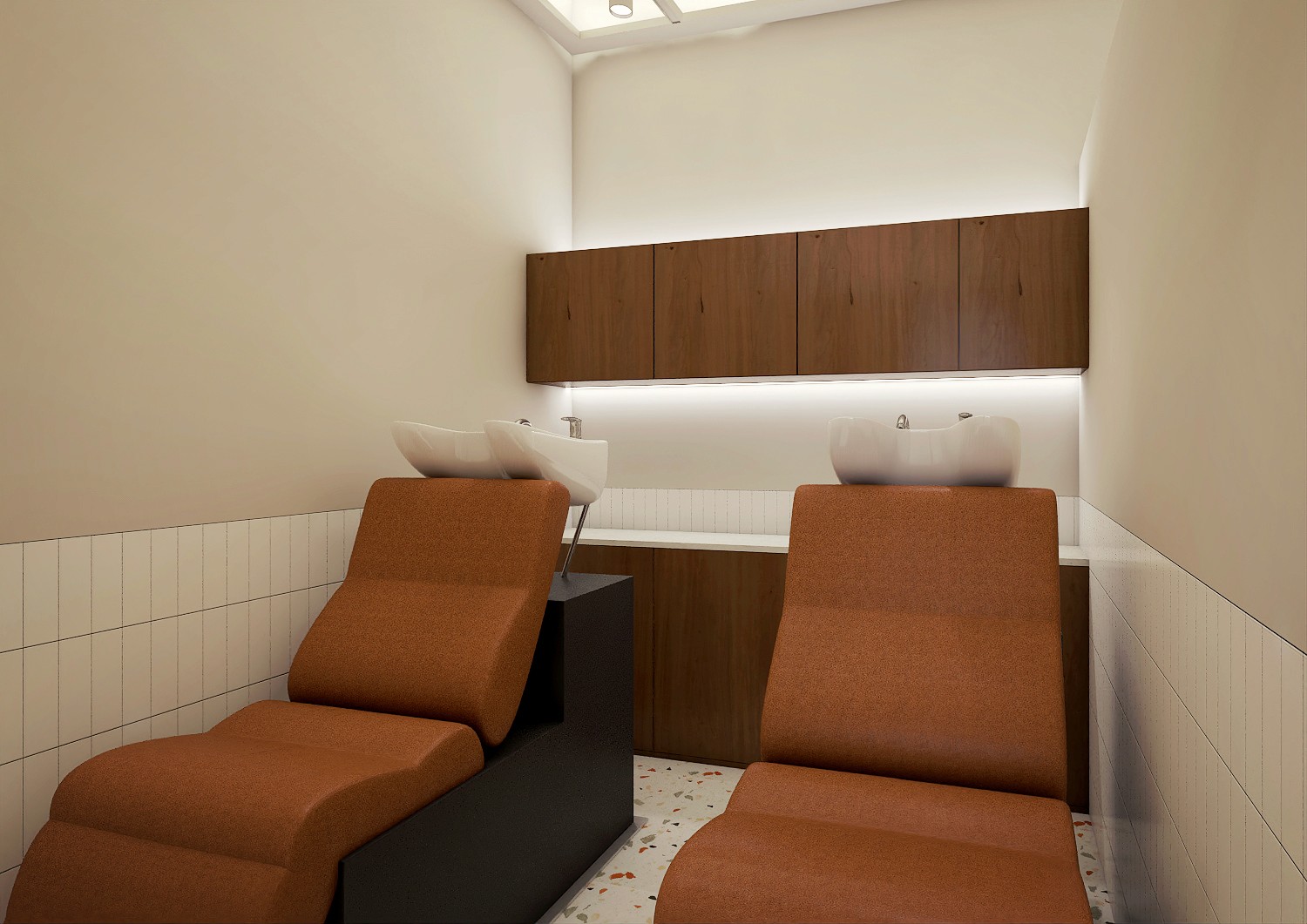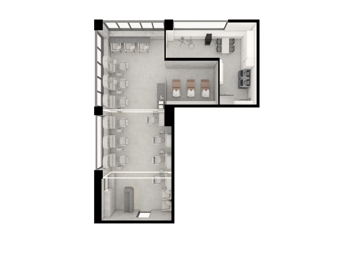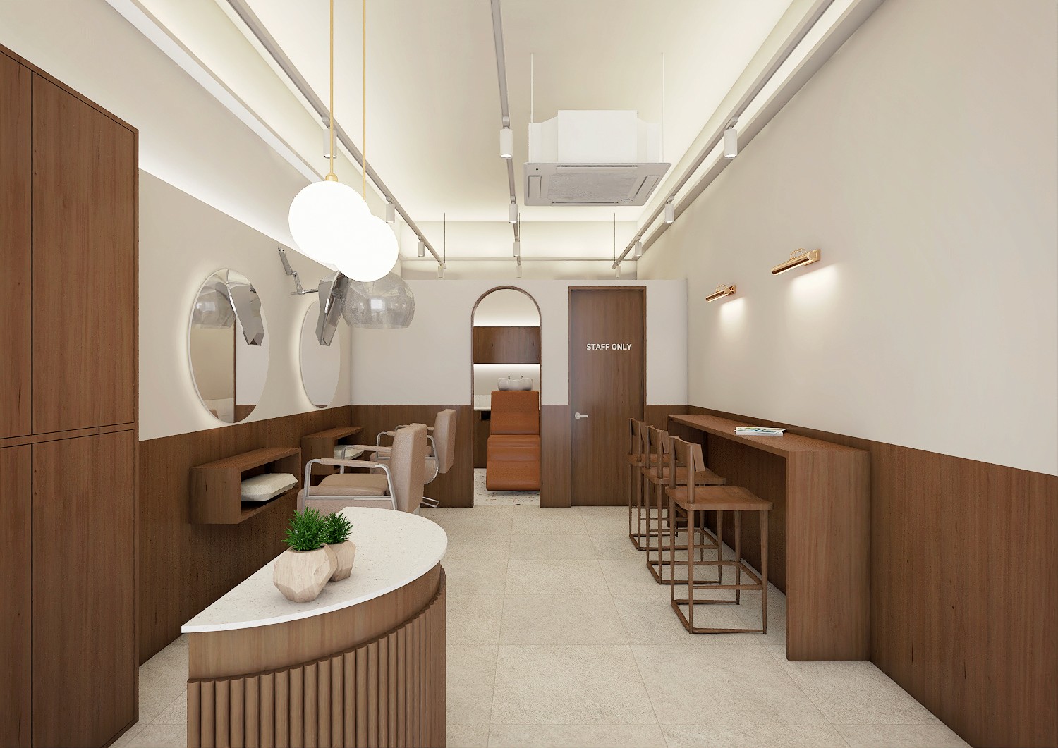 단순히 트리트먼트만을 받는 장소가 아닌것에 집중하여,커피 한잔을 마시며 휴식을 취할수 있는 편안하고 평화로운 환경을 만들기 위해 어느 컬러와 전시되어도 시각적 편안함을 주는 밝은 톤의 그레이 계열(유로미장)을 선택하였습니다.조명 또한 시술을 받는 곳에만 집중하였고,그 외 공간은 간접적인 조명으로 비추었습니다.
